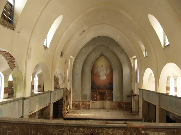 Деревянная кирха освящена в 1892 году. В советское время использовалась как склад. Рядом с храмом домик, сейчас в нём живёт православный священник, он и следит за храмом.[13]