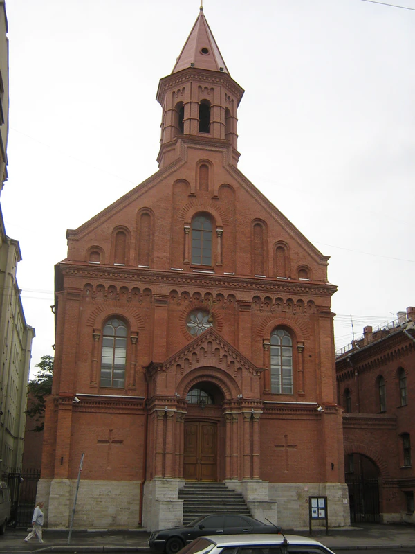 Первое здание кирхи, которая поначалу была единственной иноверческой церковью Петербурга, не сохранилось. Ныне существующее здание, стоящее в глубине участка на Невском проспекте, своим обликом отдалённо напоминает средневековый романский храм.