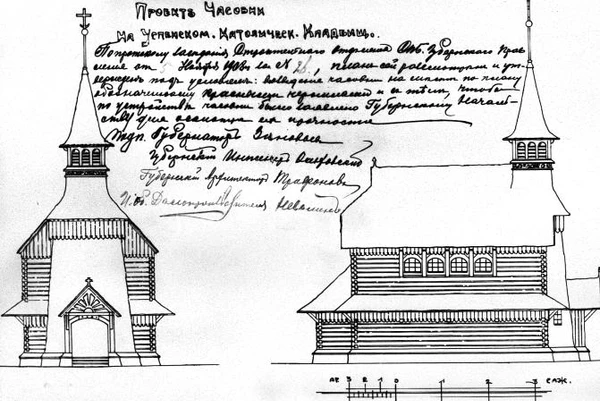 Деревянная часовня 1842 (?) года, закрыта в 1918 году. Не сохранилась[29].