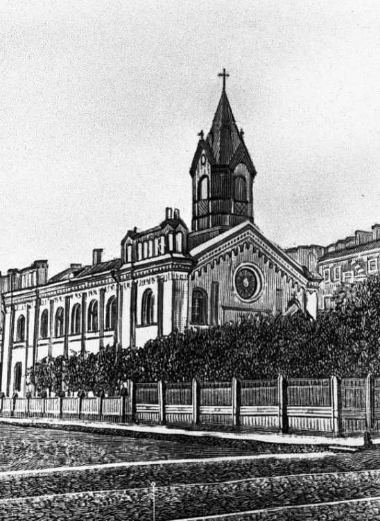 Немецкая община, возникшая в 1841 году, приобрела участок, на котором по проекту инженер-полковника К. К. Бульмеринка был заложен храм, освящённый 19 декабря 1876. Этот храм славился своей акустикой.