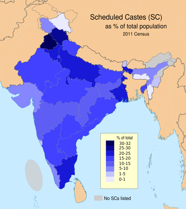 По одной из версий, группа каст неприкасаемых возникла в глубокой древности из местных племён, не включённых в общество завоевавших Индию ариев. Неприкасаемым предписывались такие «грязные» занятия, как уборка мусора, дворов и улиц, ассенизаторские работы, работа с кожей или глиной, добыча известняка, обработка строительного камня, убой скота, свиноводство, плетение циновок и верёвок и т. д.[5] Члены таких каст жили в отдельных кварталах или посёлках на окраине поселений «чистых» каст, не имели своей земли и большей частью являлись зависимыми работниками в чужих хозяйствах[3].