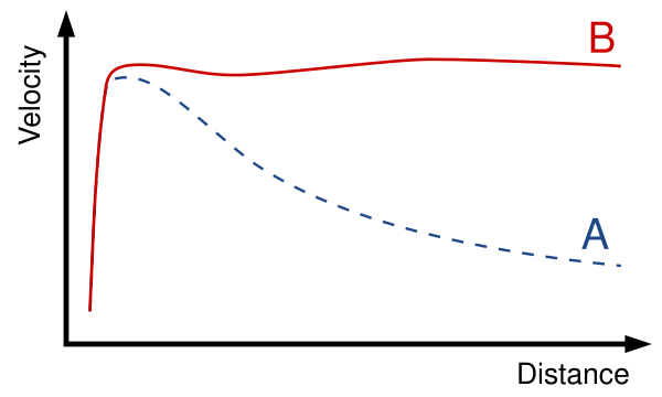 - Проблема вращения галактик: отвечает ли тёмная материя за различия наблюдаемой и теоретической скорости вращения звёзд вокруг центра галактик или это что-то ещё?
