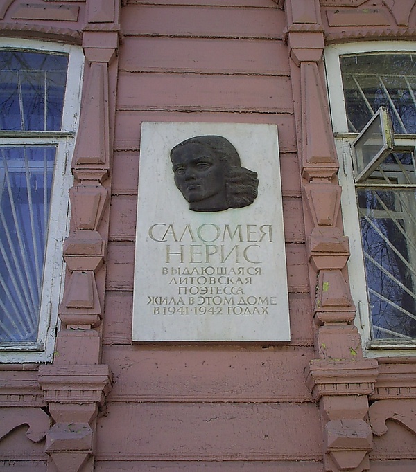 - В Каунасе в доме, в котором поэтесса жила в 1938—1941 годах, с 1962 года действует мемориальный музей Саломеи Нерис (филиал Музея литовской литературы имени Майрониса)[7].