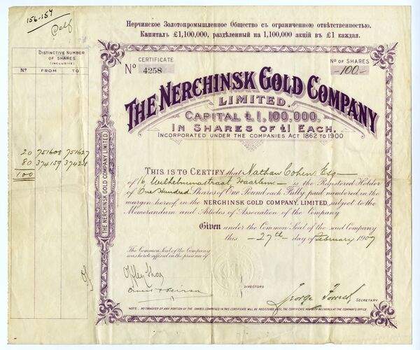 Нерчинское золотопромышленное общество с ограниченной ответственностью, учрежденное в 1901 г. в Лондоне с капиталом в 1,1 млн. фунтов стерлингов[1], оборудовавшее свою фабрику на Ключевском руднике в Забайкальской области, одним из первых в Российской империи применило методы дражной добычи золотой руды. Во многом благодаря этой инновации предприятие добилось наилучших результатов в регионе, что в итоге привело к размещению акций компании в котировальном листе Лондонской биржи[2].