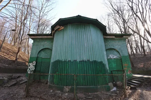 - Ванный домик — памятник архитектуры конца XVIII века, построенный в стиле классицизма. Одноэтажное прямоугольное здание с колоннами тосканского ордера, высоким куполом и террасой. По легенде, в каменной чаше-купели этого домика любил отдыхать император Александр II[16];