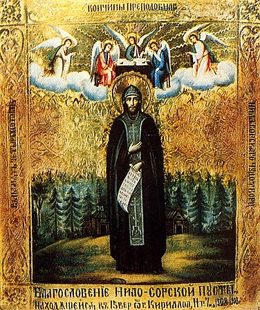 Безусловную важность в истории нестяжательства имеют взгляды авторитетного среди заволжского монашества преподобного Нила Сорского, пользовавшегося авторитетом даже среди волоколамских монахов. Его труды и житийные сборники неоднократно переписывались и цитировались. Согласно «Письму о нелюбках», памятнику полемической литературы середины XVI века, на соборе 1503 года старец Нил выступил не только против монастырского землевладения, но и, по сути, вообще против общежительных монастырей: «Нача старец Нил глаголати, чтобы у монастырей сёл не было, а жили чернецы по пустынем, а кормили бя ся рукоделием». Однако этот поздний документ содержит очевидные анахронизмы[18] и, по всей видимости, написан по чьим-то смутным воспоминаниям и противоречит учению самого преподобного. Другим источником взглядов преподобного Нила являются писания Вассиана (Патрикеева), но они страдают полемической заострённостью и тоже поставлены под сомнение. Однако известны и не раз опубликованы произведения самого Нила. Это «Устав скитской жизни», «Предание ученикам», а также четыре послания[19]. Дополнительный материал дают переписанные и откорректированные старцем житийные сборники, глоссы на полях переписанных им житий.
