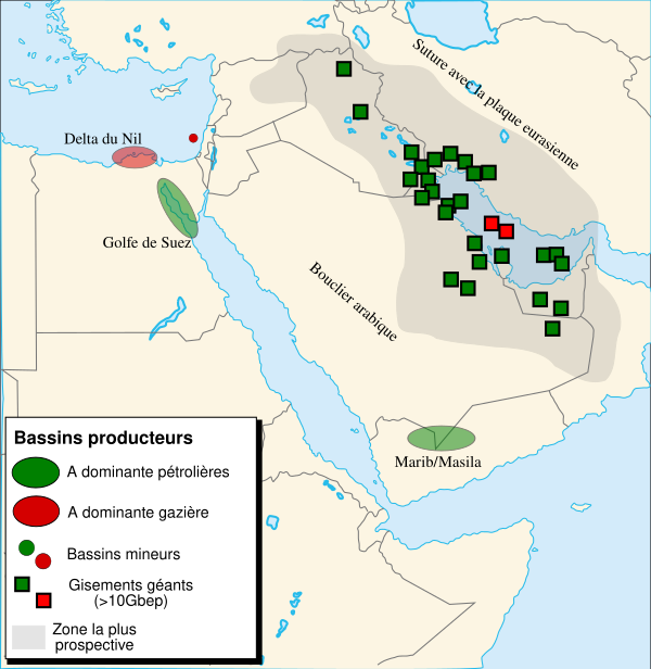 Значительная часть нефтегазоносного бассейна Персидского залива находится на Аравийском полуострове, далее он распространяется на северо-восток в Персидский залив и на юго-западный склон горной цепи Загрос. Этот бассейн располагается на территории Ирана, Ирака, Сирии, Турции, Иордании, Саудовской Аравии, Кувейта, Катара, Бахрейна, Объединенных Арабских Эмиратов, Омана.