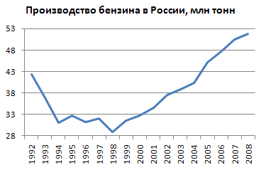 | Бензин автомобильный, млн.тонн | 36 | 3.5 | 0.5 | 33 |