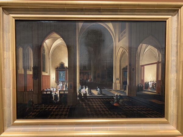 - Интерьер церкви Святого Иакова в Антверпене, холст, масло, музей изящных искусств в Шартре, дар графини де Коссе-Бриссак, 1949 (инв. 49.6.1).
