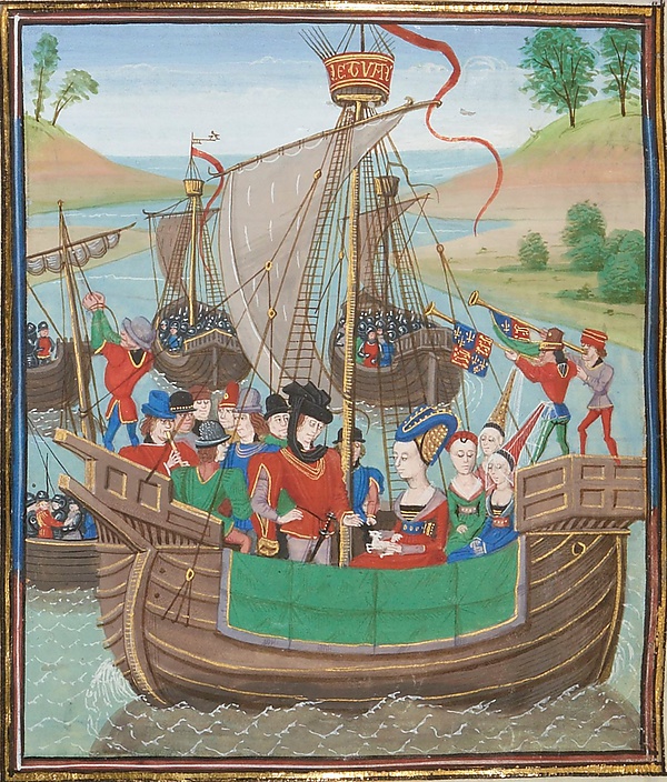 - Французский хронист Жан Фруассар, рассказывая в своих «Хрониках» о морском сражении Столетней войны при Слёйсе (1340), описывает французский флагман — неф «Кристофль», захваченный у англичан нормандцами, на котором «могла поместиться добрая тысяча человек»[6].