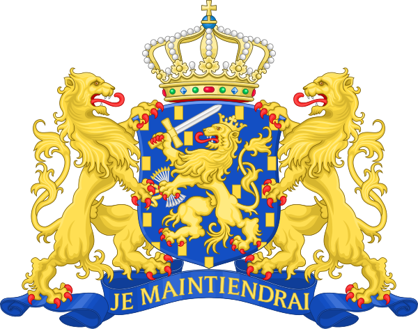 Государственный флаг — трёхцветный (красный, белый, синий по горизонтали). Герб — увенчанный золотой короной щит голубого цвета, который поддерживают с боков два геральдических льва. На щите — вздыбленный коронованный лев с мечом в лапе; под щитом — королевский девиз: Je maintiendrai («Я выстою»)[7]. Гимн — «Вилхелмус» («Песнь о Вильгельме»). Национальный праздник — 27 апреля (День короля).
