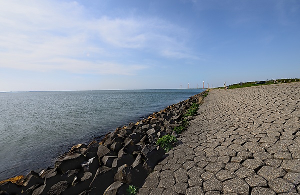 Четверть территории страны лежит ниже уровня моря на 5—7 м. Седьмая часть суши находится на высоте всего 1 м над уровнем моря, и только 1⁄50 часть территории страны — выше отметки 50 м[29]. Со времён Римской империи нидерландцы отвоёвывают землю у моря. Первые польдеры появились ещё в XIII веке, и с тех пор вдоль побережья были осушены значительные площади. Но одновременно история Нидерландов — это история непрекращающейся борьбы людей с морем. Правда, сама же природа пришла здесь на помощь человеку, защитив часть побережья довольно широким поясом песчаных дюн. Но этот пояс был несплошной, и к тому же песок развеивался ветрами. Тогда люди стали укреплять дюны различными посадками, а в местах разрывов сооружать земляные дамбы и плотины. Такие же дамбы и плотины они начали возводить на реках. Отсюда, кстати, происходят и многочисленные географические названия с окончанием «дам» (дамба, плотина), например Амстердам («плотина на реке Амстел») или Роттердам («плотина на реке Ротте»).