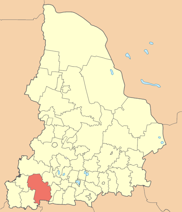 С точки зрения административно-территориального устройства области, в состав района входят 43 населённых пункта, в том числе 2 города, 4 пгт и 37 сельских населённых пунктов.