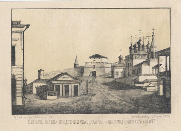 С середины XVII века в Нижнем Новгороде были развёрнуты крупные работы, связанные с перестройкой деревянных церквей в каменные. Многие из них строились на средства богатых нижегородских купцов, таких как Семён Задорин, Афанасий Олисов, Григорий Строганов, Яков Пушников и др. Первыми перестраивались церкви в самом оживлённом районе города — на торгу: Троицкая (1663), Казанская (1687), Предтеченская (1683) и новая Борисоглебская (точная дата не установлена). В 1655 году возведена каменная Рождественская церковь на Торгу[14].