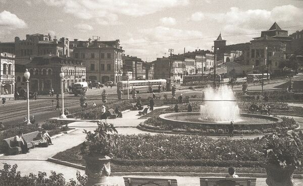 После сноса корпусов гостиного двора новое оформление получает участок бывшего торга на стыке Рождественской улицы и Зеленского съезда. В 1954 году здесь был разбит сквер с фонтаном[1][30].