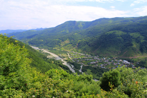 По обоим берегам реки в районе аула преобладают лиственные леса: растут преимущественно берёза, дуб, бук. Однако уже к юго-востоку от горы Артмах и к югу от реки Амгата в значительных количествах начинают произрастать хвойные — пихта и сосна. В районе аула распространено отгонное животноводство, в меньшей степени на правом берегу, в большей — на левом, на луговых пастбищах у вершины Бруш-Серты. Юго-западнее Нижней Теберды, на левобережье, ранее располагались также шахтный участок, насосная станция, водокачка. Ещё южнее, на Военно-Сухумской дороге в устье реки Амгата, находится комплекс кафе[6].