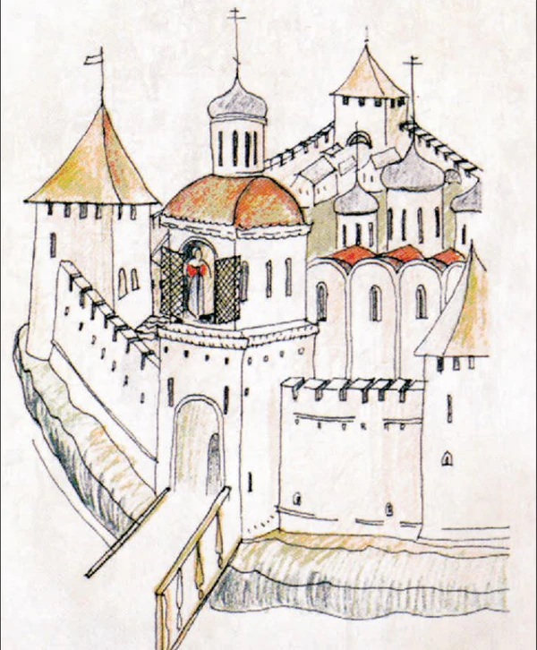 В 1541 году старая крепость отстраивается заново после сильного пожара. Память об этом событии сохранила надпись на стене Старо Никольского собора (ныне Петропавловской церкви): «лета 7049-го делали паперть, да и город делали тогож лета пожгле я». После того пожара от укреплений дерево-земельной крепости остались только лишь земляные валы, да обгоревшая белокаменная Никольская башня[13]. После постройки новой дерево-каменной крепости на Никольских воротах находилась вышка для часов с боем, к которым был приставлен часовщик[5].