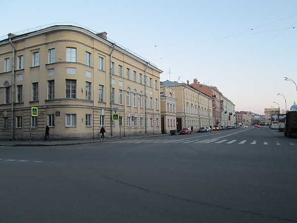 - Никольская площадь при въезде с Садовой улицы через канал Грибоедова по Ново-Никольскому мосту (яндекс-панорамы); направление обзора противоположное направлению съемки на фото слева.