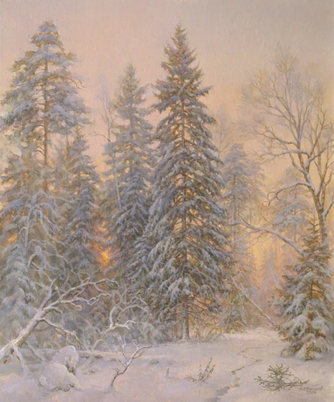 Моя техника живописи маслом позволяет на сравнительно малом поле уловить тонкие цветовые соотношения, передать не только мельчайшие детали, но и особую влажность и светоносность атмосферы. Творчество старых мастеров Саврасова, Шишкина, Поленова, Левитана и особенно близкого по духу Похитонова и определило мои художественные взгляды и ценности, — рассказывал художник[4].