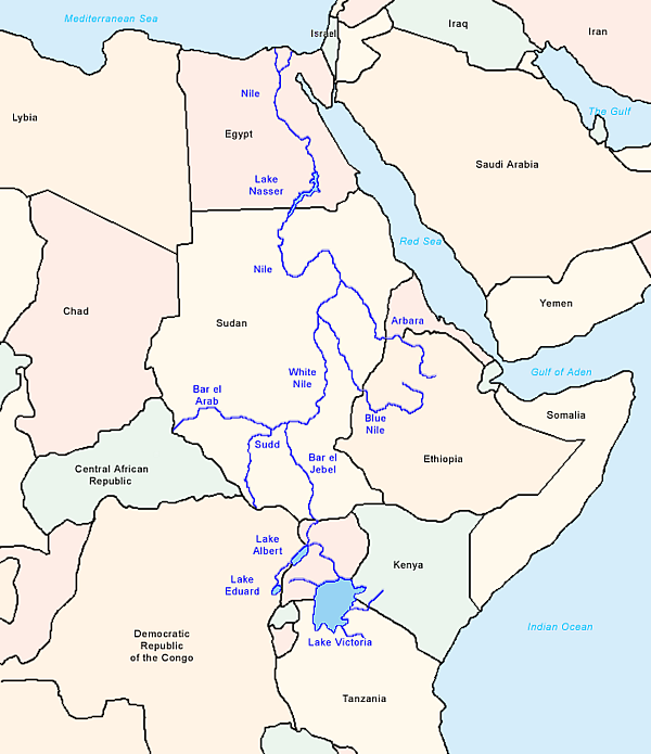 Длину Нила часто отсчитывают от озера Виктория, хотя в него и впадают довольно крупные реки. Высота его — 1134 м над уровнем моря. Длина Нила от озера Виктория до Средиземного моря — примерно 5600 км.