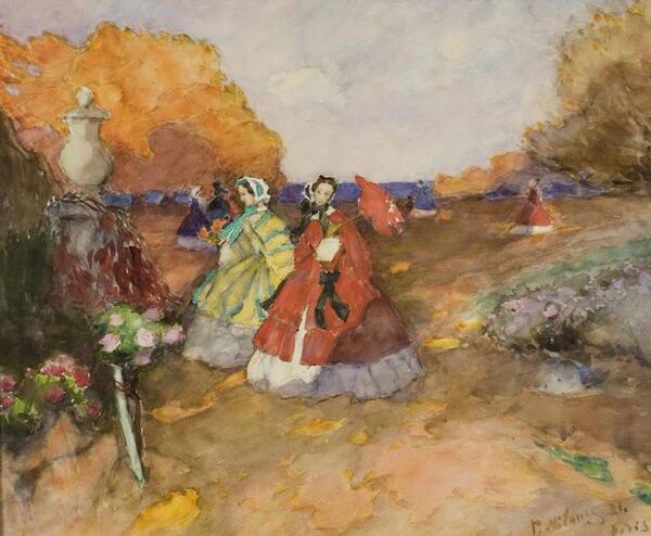 В 1890-е годы он писал главным образом жанровые картины на общественно-значимые темы. Об этом времени П. А. Нилус вспоминал: «Был правоверным передвижником целых 13 лет. Затем началась эволюция от крайнего реализма к индивидуализму». В первом десятилетии XX века, после зарубежных поездок и знакомства с новым современным искусством, художник отошёл от бытового жанра и социальной проблематики, отдавая предпочтение пейзажу и импрессионистической живописной манере. Следующий период в творчестве Нилуса — «символико-романтический» или «ретроспективный»: художник писал галантных кавалеров и дам, прогуливающихся в парках или встречающих рассвет[3].