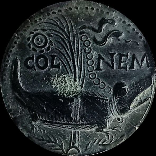 Эмблема Нима повторяет дизайн монеты (римского асса), отчеканенной в городе в начале нашей эры. На ней был изображён крокодил, прикованный к пальме, — символ подчинения Египта Риму. Ниже располагались буквы COL NEM — «Колония Немаусская».