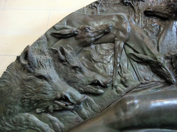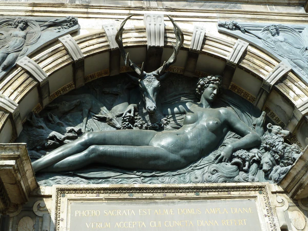 Рельеф относят к ранним произведениям французского маньеризма школы Фонтенбло. Обнажённая женская фигура имеет характерные маньеристические пропорции, которые в наше время воспринимаются по меньшей мере странными: чрезмерно удлинённые ноги, маленькая голова, обнимающая за шею оленя (эмблема короля Франциска I). Она имеет сходство с юной Дианой де Пуатье. В эпоху французского маньеризма в этом не видели ничего предосудительного. Именно в этот период во французской живописи и скульптуре появляется множество изображений обнажённой Дианы-охотницы, древнеримской богини с лицом прекрасной Дианы де Пуатье. «Эти изображения свидетельствуют о своеобразном галльском культе обнажённого тела и о том, что подобные намёки были не только разрешены, но, вероятно, открыто поощрялись самой мадам Пуатье»[3].