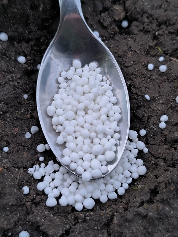 (1 чайная ложка вмещает 5 г, 1 столовая ложка — 15 г, 1 стакан (200 см3) — 200 г нитрофоски) |
