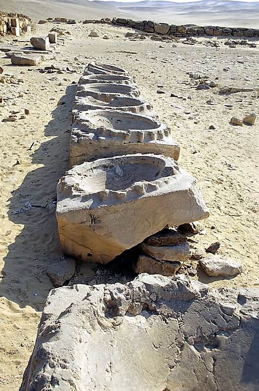 Возле юго-восточного угла основания обелиска находилась небольшая часовня. Вся северная часть конструкции была занята кладовыми и большими дворами для жертвоприношений священных животных. Верхний вход, жертвенник и обелиск находятся на одной оси, но не в центре ансамбля. Северная часть с кладовыми и дворами для жертвоприношений занимает больше места, чем южная с находящимися в ней галереей и часовней. К югу от святилища была найдена солнечная барка длиной около 30 м, отчасти высеченная в скале, отчасти сложенная из расписанного сырцового кирпича. Эта барка была необходимым элементом солнечного культа. Бог Солнца имел в своём распоряжении 2 барки: дневную, Манджет, и ночную, Мескетет. Несмотря на скрупулёзные поиски, вторая барка не была найдена[4][5].