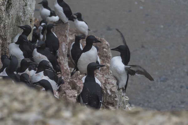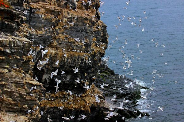 На островах архипелага можно обнаружить крупнейшие в российском районе Арктики птичьи базары. Здесь селятся кайры, атлантические тупики, чайки[45]. Из птиц наиболее обычны полярная крачка, поморники (короткохвостый, длиннохвостый, средний), зимняк, бургомистр, белая куропатка, гуменник, белолобый гусь, полярная сова, гага обыкновенная, лапландский подорожник, рогатый жаворонок, обыкновенная каменка, обыкновенная чечётка, пуночка, различные кулики (чернозобик, плавунчики, песочники, песчанка). Также встречаются лебеди — малый и кликун. Водоплавающие птицы и кулики встречаются преимущественно на озёрах, в заболоченных низинах, на реках и ручьях. В зоне арктических тундр основу орнитофауны почти во всех местообитаниях составляет пуночка, также наиболее многочисленными и распространёнными являются галстучник, рогатый жаворонок, гуменник и морской песочник. В зоне полярных пустынь население птиц крайне бедное — дефицит кормовой базы для наземных птиц и экстремальные климатические условия приводит к резкому снижению численности одних видов и полному отсутствию других. Поддерживать высокую численность в зоне полярных пустынь способны лишь виды, так или иначе связанные с морем, поэтому в орнитофауне этой зоны преобладают чайковые (бургомистр, белая чайка, поморники, полярная крачка) и кулики (морской песочник); из воробьиных обитает только пуночка[46][47].