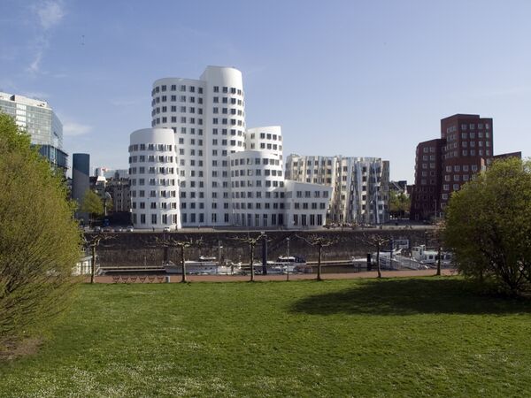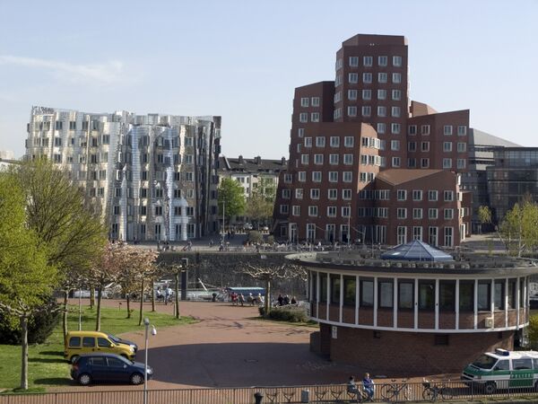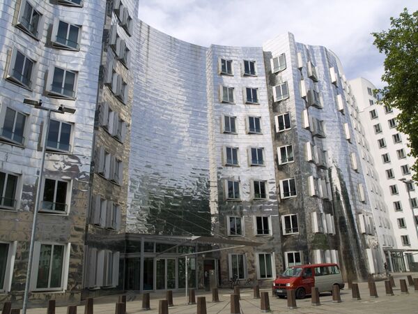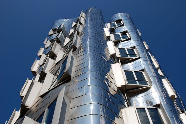 В 1994 году был утвержден проект, предложенный архитектурным бюро Фрэнка Гери. Комплекс состоит из трёх зданий: северо-восточный корпус — восемь 3—13 этажных блоков белого цвета, юго-западный — восемь 3—11 этажных блоков тёмно-красного цвета и средний — четыре зеркальных 6-этажных блока. Зеркальный корпус имеет гофрированную форму, так что в нём причудливо отражаются два других корпуса, образованных несимметричными наклонными линиями и дугами.
