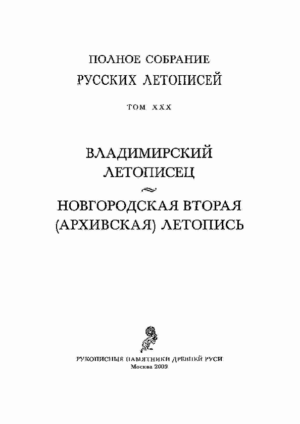 - Полное собрание русских летописей. — М., 1965. — Т. 30. Владимирский летописец. Новгородская вторая (Архивская) летопись. — С. 147—205.