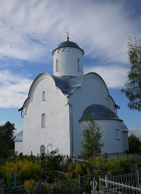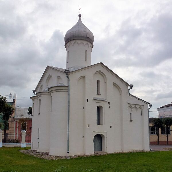 К этому же типу храмов относят церковь Параскевы Пятницы на Торгу. Несмотря на многократные перестройки, это здание сохранило черты архитектуры 1156—1207 годов. Храм имеет три пониженных притвора (сохранился лишь северный), уступчатые лопатки на углах (типичные для смоленской школы), боковые апсиды прямоугольной формы. Верхняя часть, вероятно, имела трёхлопастное завершение. Из летописи известно, что церковь строили «заморские купцы», возможно, с помощью смоленских каменщиков, а заканчивали здание новгородцы.