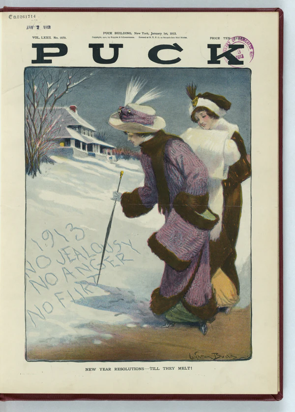 Первые же документальные свидетельства показывали, что с соблюдениями новогодних обязательств возникали трудности. 31 декабря 1661 года автор знаменитого дневника стюартовских времен Сэмюэл Пипс принял обет пить меньше вина. Сохранилась расписка от 20 января 1662 года о доставке в его дом четырёх галлонов малаги. C XIX века дидактическая сторона обещаний практически потеряла актуальность. Традиция постепенно стала идеалистичной и поводом для саркастических шуток. Оскар Уайльд писал: «Хорошие обещания просто чеки, которые люди выписывают, зная, что в банке пусто на счету». Марк Твен вторил ему: «Новый год — замечательное время для обещаний. Пройдет неделя, и вы выложите ими дорогу в ад»[7]. Газеты и журналы в англоязычном мире в январских номерах часто публикуют материалы об обещаниях и рекомендации по их исполнению. Популярны открытки, ежегодники с распространёнными примерами New Year resolutions[3].
