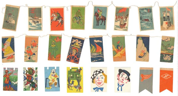 Были широко распространены наборы флажков с портретами знаменитых клоунов, популярных героев зарубежной детской литературы (Малыш и Карлсон, Чиполлино, Винни-Пух, оловянный солдатик).