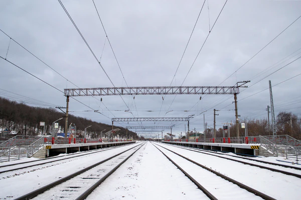 Две высоких платформы. Участок перед станцией из двухпутного переходит в четырёхпутный. Два крайних пути с платформами, два других проходят между ними и недоступны с платформ.