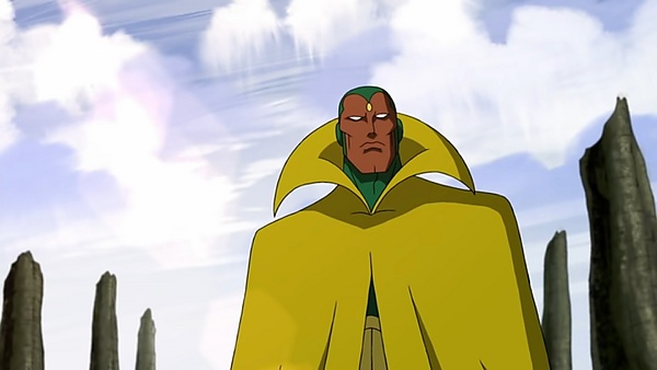 Тор заходит в квинжет, но никого не видит, однако из стен вылетает Вижен и атакует его. Он справляется со остальными Мстителями и движется в джунгли. Мстители и вакандийцы следуют за ним. Он оценивает угрозу и решает нейтрализовать всех. Разобравшись с солдатами Ваканды, он побеждает Мстителей. Тор злится и летит выпускать молнии, но Вижена это не беспокоит, и он продолжает свой путь. Тем временем Джейн Фостер приходит в себя в особняке и надеется, что её подруга Оса выжила. Чёрная пантера предполагает, что Вижен пошёл в шахты с вибраниумом, и герои идут туда. Настигнув злодея и слушая его речь, Т’Чалла обнаруживает, что это робот. Вижен снова одолевает Мстителей и обрушивает на них шахту, покидая её с добытым вибраниумом. Узнав о местоположении щита, он прибывает на арену королей Ваканды и сталкивается с Соколиным глазом, которого предупредила пришедшая в себя Оса. Вижен довольно легко побеждает Клинта, уничтожив его лук, и собирается забрать щит. Выбравшиеся из-под обломков Мстители догоняют его. Кэп и Тор отвлекают робота, а Чёрная пантера включает машину кузницы, и когда Вижен пытается взять щит, то звуковые волны вибраниума расплавляют его руку, и он теряет контроль над плотностью. Щит починен, и Т’Чалла бросает его Кэпу. Пользуясь моментом, Мстители одолевают робота, и он, оценив низкую вероятность успеха, прерывает миссию и отступает. Герои радуются победе, а Оса предупреждает Джейн Фостер об опасности романа с супергероем. Вижен возвращается на базу к своему создателю, Альтрону[b]. Последний разочаровывается в своём творении, но говорит, что благодаря чистому адамантию, который Вижен принёс, он станет неразрушимым, и его никто не сможет остановить.