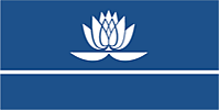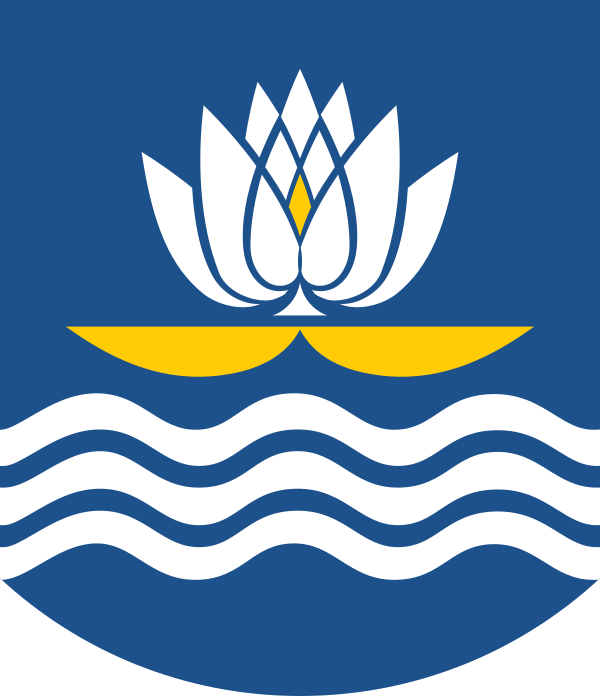 В голубом поле испанского щита три серебряных волнистых пояса, над которыми серебряная кувшинка с двумя золотыми развёрнутыми стилизованными лепестками.