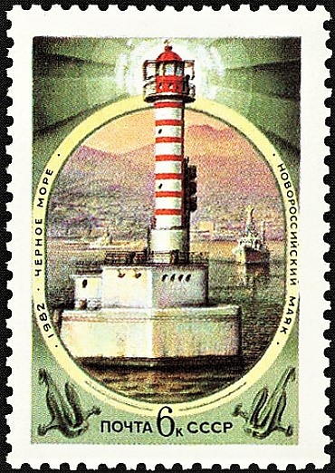 29 декабря 1982 года в СССР в серии «Маяки Чёрного и Азовского морей» издана почтовая марка номиналом 6 копеек, тиражом 6100 тыс. На марке изображены: маяк на восточном молу в порту Новороссийска, вид на порт и Маркотхский хребет, надписи «1982 Чёрное море» и «Новороссийский маяк»[149].