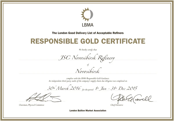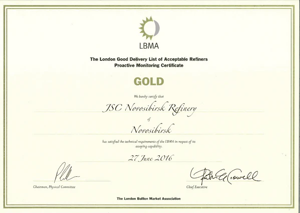 Аффинажные предприятия сертифицируются Лондонской ассоциацией рынка драгоценных металлов каждые три года.