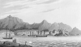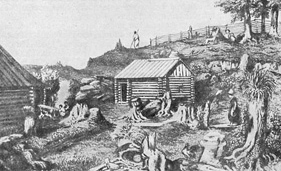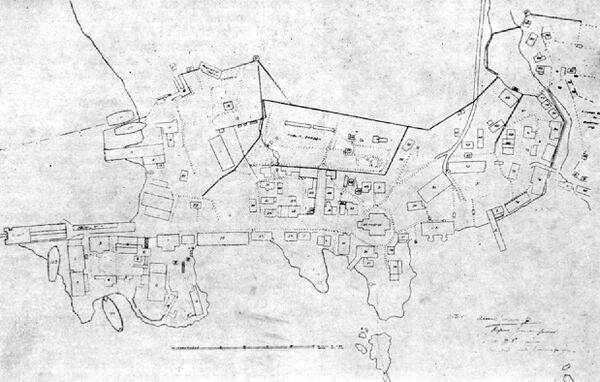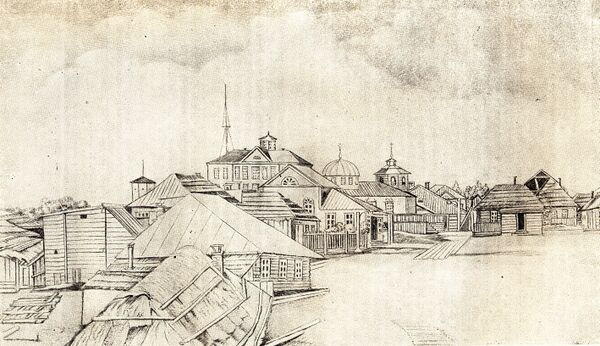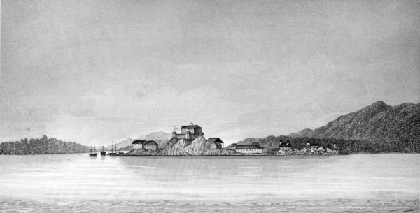на горе красуется довольно большое двухэтажное деревянное здание: дом главного правителя колонии с батареею.