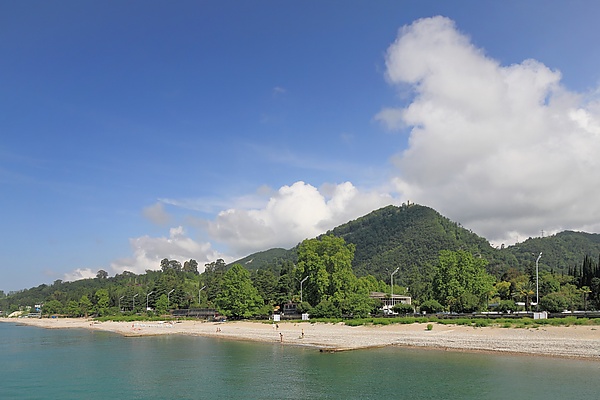 Город расположен на побережье Чёрного моря в ущелье, защищённом с двух сторон горами — Афонской и Иверской (Анакопийской)[16]. Рельеф представляет собой узкую приморскую равнину, которая переходит в предгорья[17].
