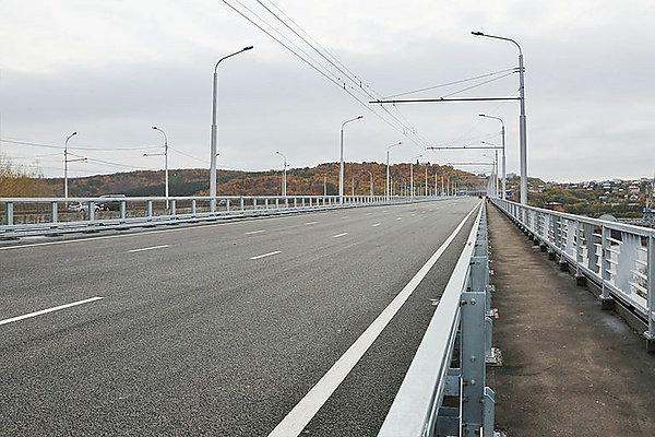 Движение по трём полосам моста организовано на въезд из города.