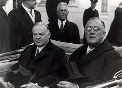 Поздно вечером 18 февраля 1933 года Рузвельт получил лично в руки от агента Секретной службы большой конверт с рукописным письмом Гувера в 10 страниц. В письме Гувер прямо описал ситуацию в американской экономике и банковской системе — и просил Рузвельта выступить с «обнадёживающим» заявлением. 3 марта Гувер предпринял последнюю попытку заручиться поддержкой Рузвельта; новая встреча закончилась взаимным раздражением, и больше политики никогда не встречались тет-а-тет. Тем временем многим современникам начало казаться, что «американский капитализм зашёл в тупик»: кризис поколебал доверие к капиталистическим институтам, «к морали и этике буржуазного мира»[8][10].