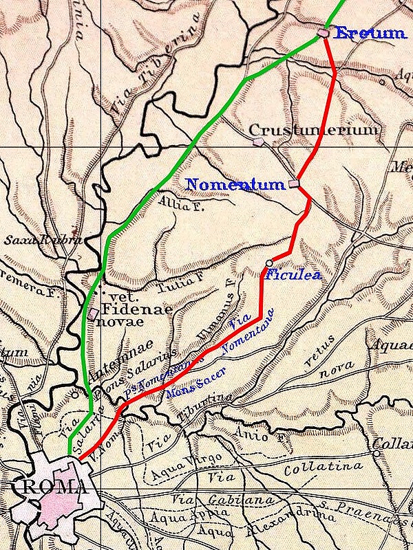 Дорога в Риме начиналась у Коллинских ворот Сервиевой стены, позднее были построены Номентанские ворота, на месте которых Микеланджело выстроил Пиевы ворота.