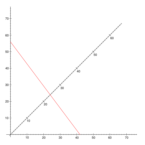 На рисунке красная линия показывает, что при параллельном соединении сопротивлений 56 и 42 ом сопротивление цепи составит 24 ома. Номограмма также показывает, что объект на расстоянии 56 см от линзы с фокусным расстоянием 24 см образует оптическое изображение на расстоянии 42 см.