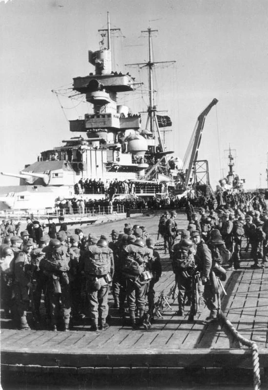 Для операции были использованы почти все корабли военного и торгового флотов рейха[22]. Транспортные суда планировалось разгружать в захваченных портах сразу после десантирования, поэтому суда для Нарвика должны были выйти за 6 суток до «дня Везер»[17]. Военные корабли могли выйти на 3 дня позже, так что точка невозврата начала операции наступала как раз в этот момент[17]. Кригсмарине впервые выпало перевозить крупные сухопутные подразделения, поэтому для прикрытия десанта и атак против возможного контрдесанта были использованы субмарины[23]. Надводный флот уже понёс ощутимые потери и имел теперь в наличии следующие силы: линкоры «Шарнхорст» и «Гнейзенау», карманный линкор «Лютцов», 2 тяжёлых и 4 лёгких крейсера, 14 эсминцев, 7 торпедных катеров[24].