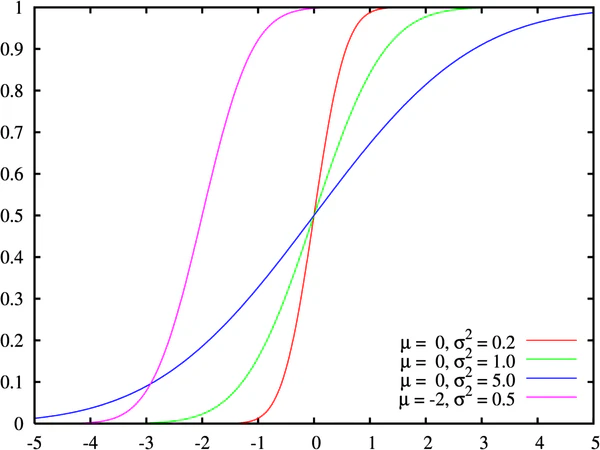 Нормальное распределение с плотностью средним и отклонением имеет следующую функцию распределения: