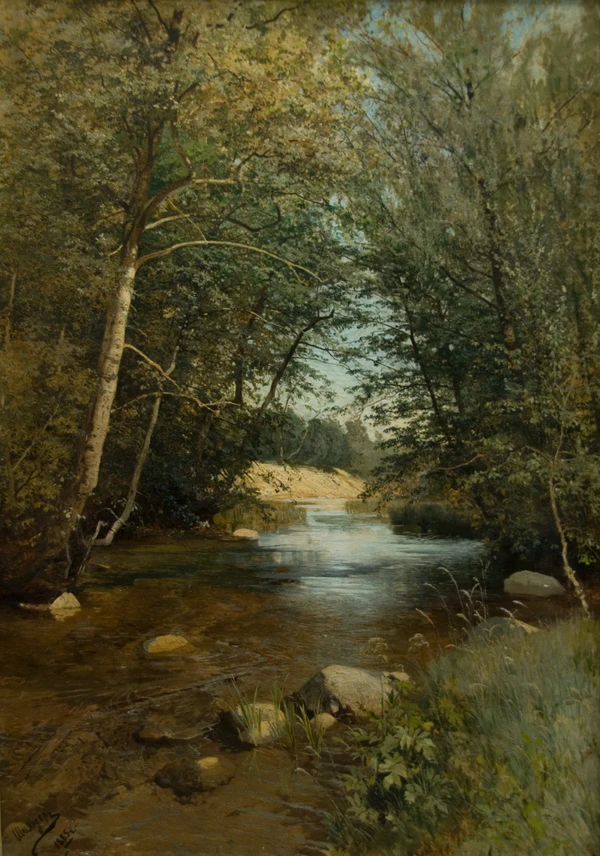Андрей Николаевич Шильдер — русский пейзажист, академик Императорской Академии художеств (1903), автор театральных декораций. Развивал реалистическую манеру, уделяя внимание атмосфере, свету и деталям растительности. Писал преимущественно маслом и акварелью. Известен панорамными композициями и крупномасштабными этюдами «с натуры». Учился у И. И. Шишкина, работал «в поле» в Крыму и Беловежской пуще.