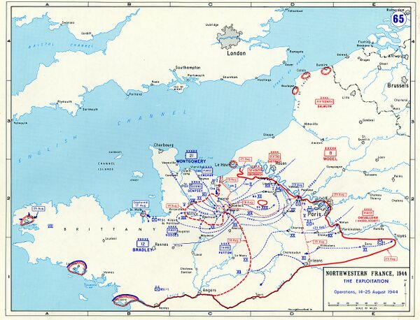 Совместно с этим с 15 августа до начала осени американские и французские войска успешно провели Южно-французскую операцию, в качестве дополнения к Нормандской операции. Далее, осуществив эти операции, войска союзников, наступавшие с севера и юга Франции, соединились и продолжили наступление к германской границе, освободив практически всю территорию Франции.